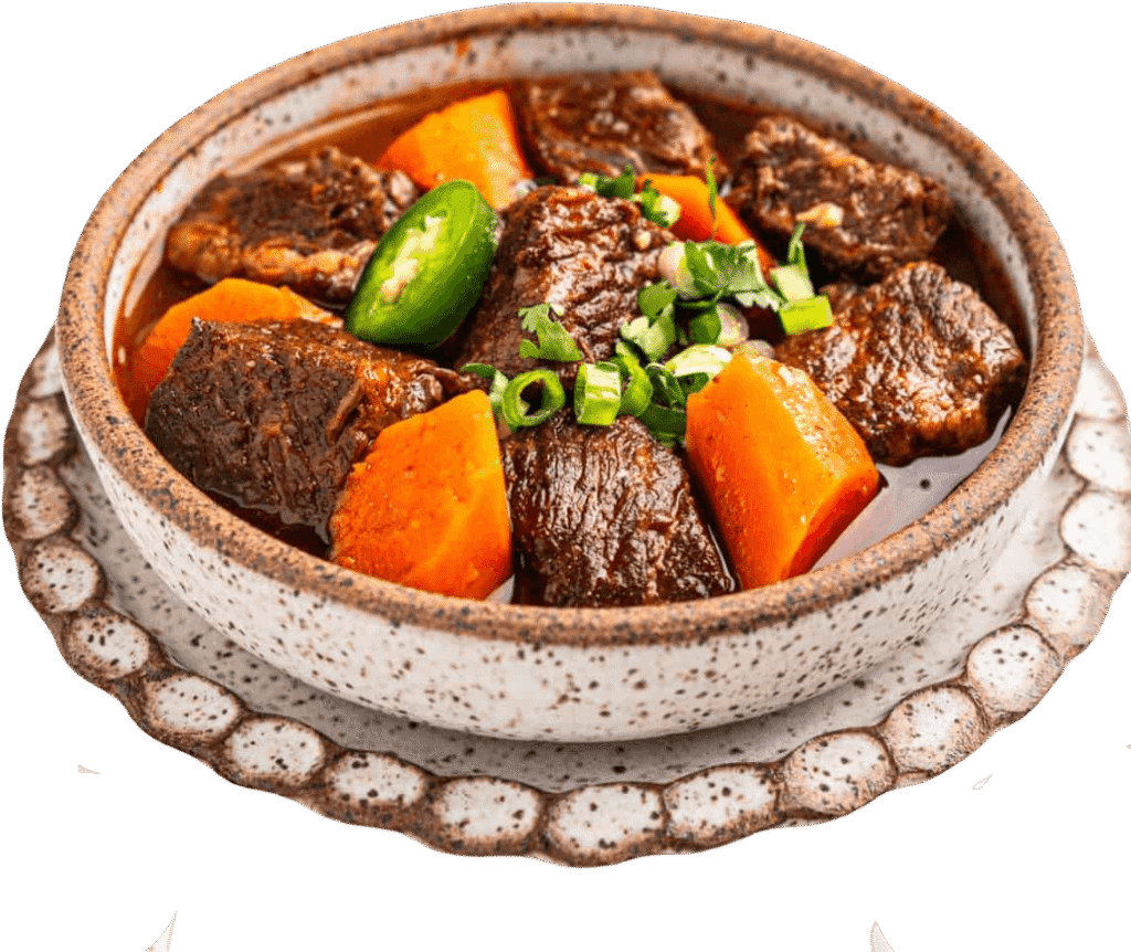 Hearty beef simmered in a rich, savory broth with vegetables for a warm and comforting soup.