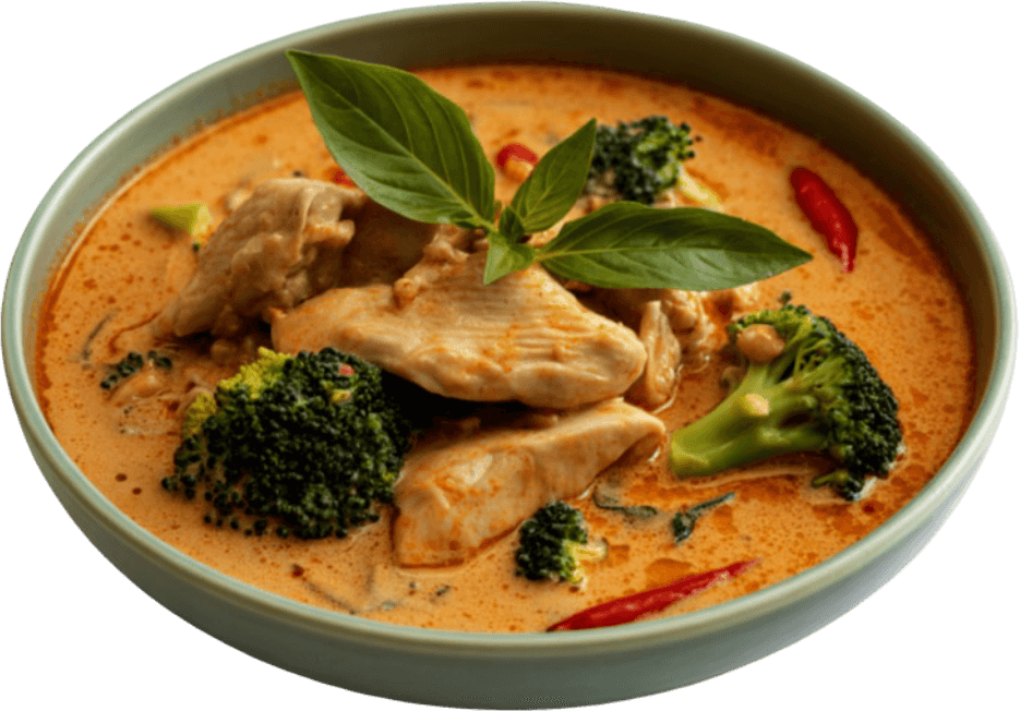 A flavorful thick coconut curry, served with vegetables and side of rice or naan bread. Choice of Red or Green Curry.